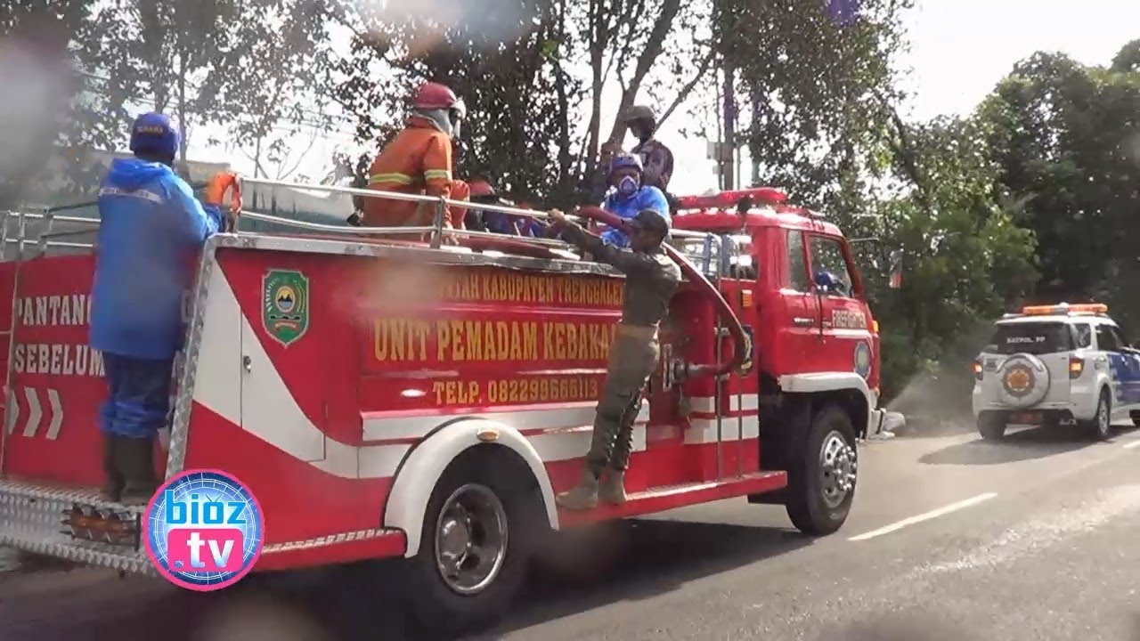 TRENGGALEK, bioztv.id – Antisipasi penyebaran wabah virus corona, mobil pemadam kebakaran semprot kawasan perkotaan Trenggalek dengan desinfektan. Selain menyisir jalan protocol. Penyemprotan ini juga dilakukan di akasan perkotaan hingga kawasan perumahan yang ada di Trenggalek.